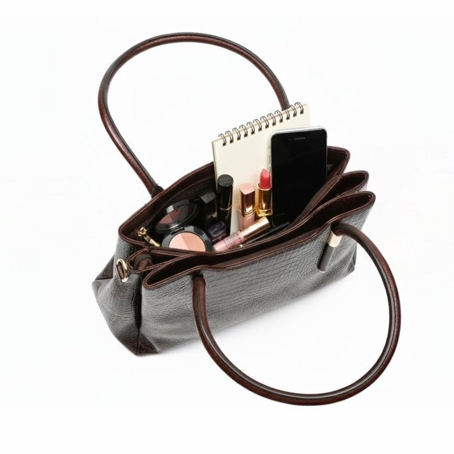 Aveline Handbag by STAN LEATHER Elegant, confident, and effortlessly versatile the Aveline Handbag is crafted from premium full-grain leather with a rich croc and pebbled texture. It’s a timeless statement piece that carries your world beautifully, from workdays to weekends.