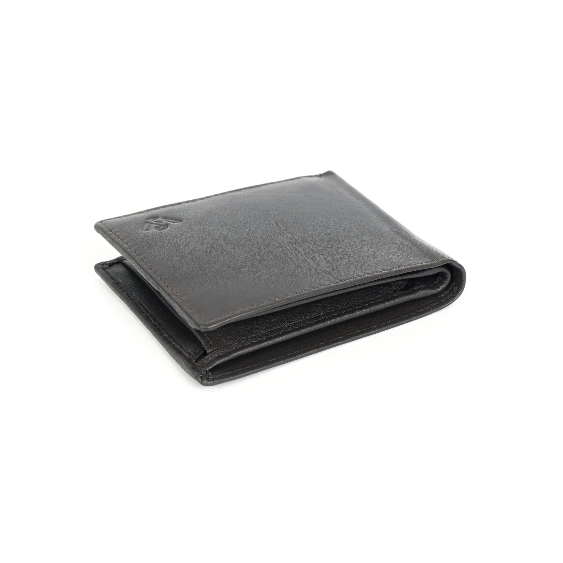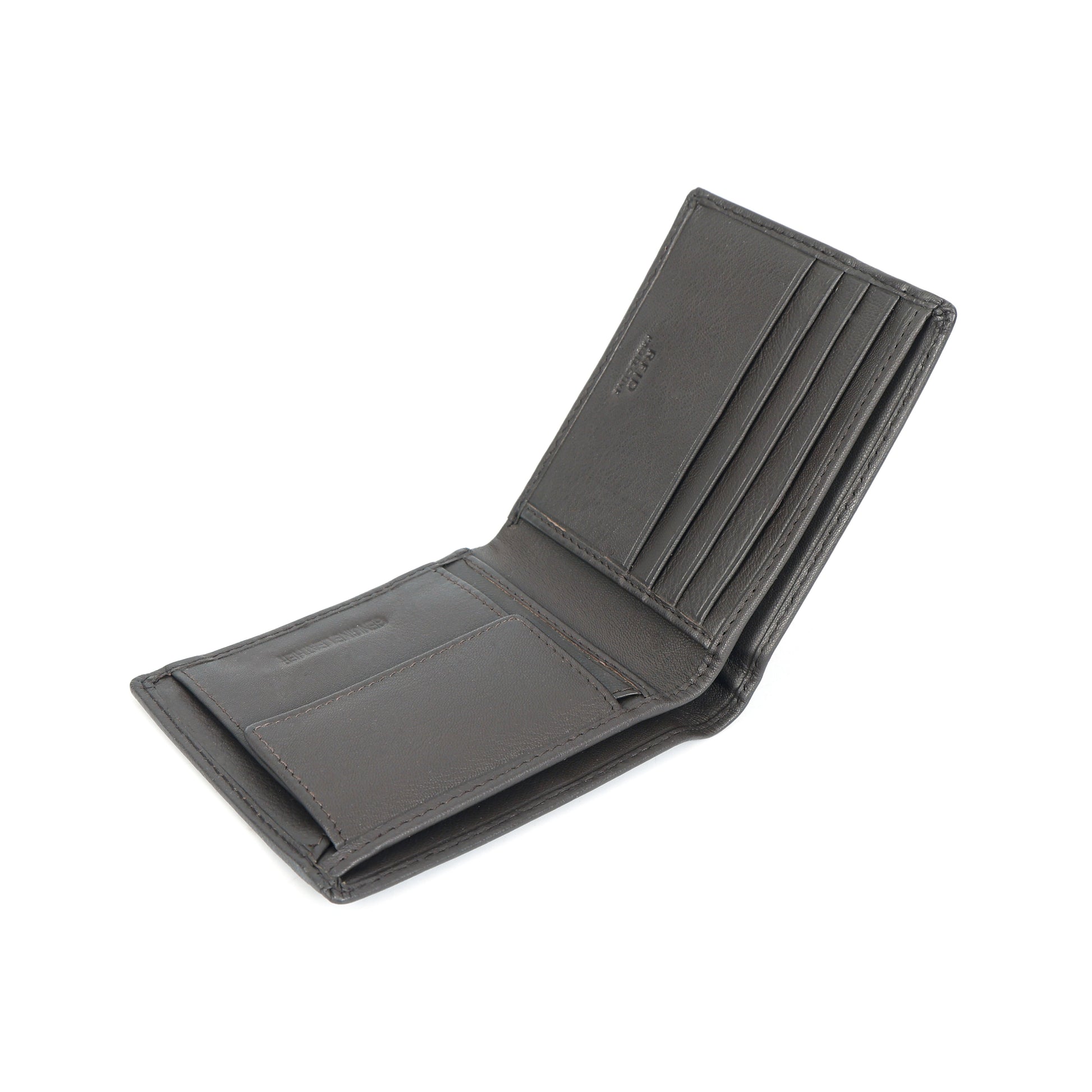 Slim bifold wallet with card slots, bill sections, coin pocket, hidden slips, and built-in RFID protection for safe, organised carry.